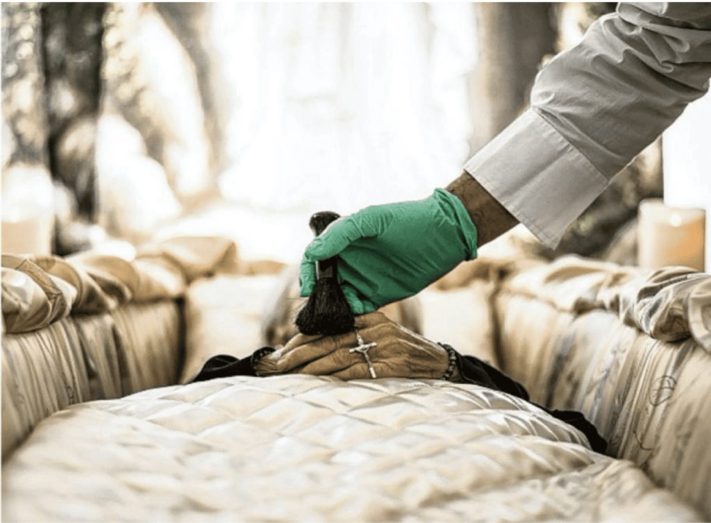 La famille et les proches du défunt peuvent alors se recueillir devant le disparu comme s’il se reposait. Il a été lavé, habillé, coiffé délicatement avec beaucoup de respect ce qui permet à la famille d’appréhender le deuil plus sereinement.